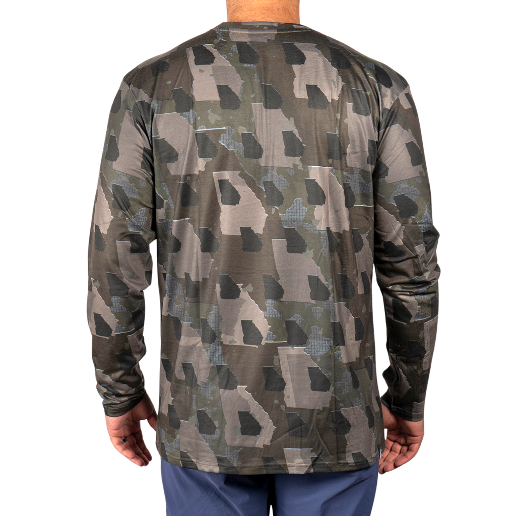 • Georgia camo print • Moisture Wicking Fabric technology. • Lightweight & buttery soft feel • 4 Way Stretch allowing maximum movement & performance. • Thumbholes in sleeve